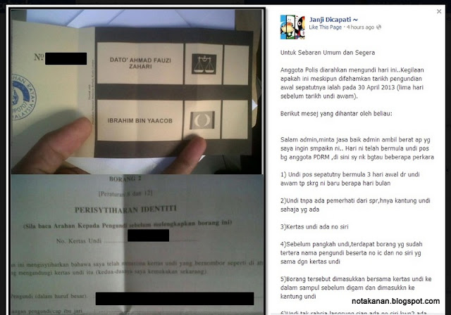 Petang tadi telah tersebar dengan meluas melalui Facebook gambar kertas undi dengan kenyataan yang saya anggap sebagai satu lagi cubaan untuk memburukkan SPR.